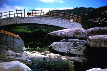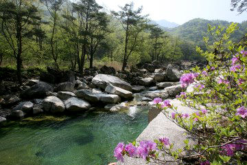 순서대로 제5경인 사인암과 제6경인 하선암, 제7경 중선암, 제8경 상선암의 모습.제5경은 하늘을 향해 뻗은 암벽 위로 노송이 어우러진 모습이 장관인 사인암이다. 사인암은 정적이면서도 동적인 분위기를 지니고 있다. 조선 시대 최고의 화원이라 불리던 김홍도도 사인암을 그리기 위해 1년이나 고민했다고 하니, 사인암의 아름다움과 매력이 보여주는 무한함을 짐작할 수 있을 것이다. 제6경부터 제8경까지는 이미 많은 사람들에게 알려진 삼선구곡을 이루는 심산유곡이다. 이곳의 첫 경승지는 하선암이다. 하선암은 흰 바위가 3단으로 펼쳐져 있는 곳이다. 이곳 하선암의 바위들은 방문객들에게 아낌없이 쉼터를 내어준다. 그리고 그 위에는 둥근 바위가 미륵처럼 앉아 있다. 하선암은 봄이면 진달래와 철쭉이 활짝 피고 여름이면 아련한 물안개가 피어나 더욱 아름다운 풍경을 자아내는 것으로 유명하다.