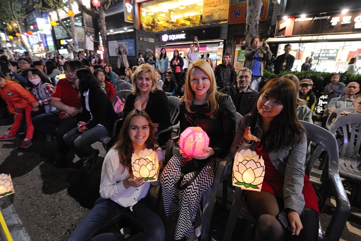 연등축제는 우리 전통문화를 외국에 알리는 역할도 한다. 사진은 예년 서울 '연등회'에 참석한 외국인들.