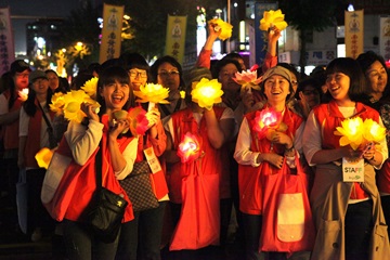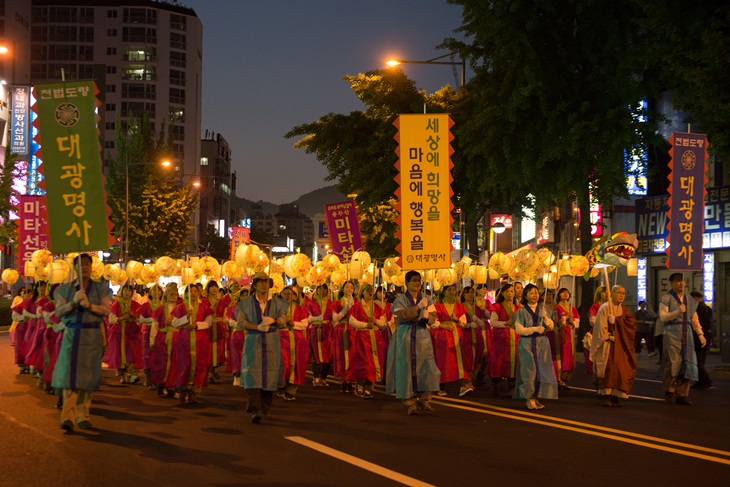 부산의 시가지 일대를 도는 '부산 연등축제' 연등행렬. 부산 시민들이 대거 참여하는 공동체 행사다.