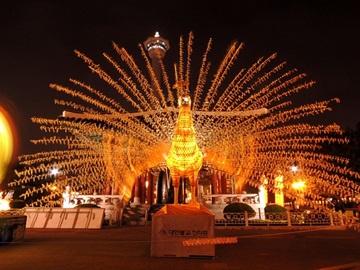 연등회에서 빼놓을 수 없는 연등행렬. 불 밝힌 대형 장엄등의 모습이 아름답다.