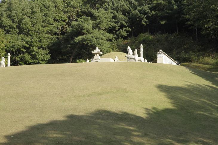 숙종의 명릉, 추존왕 덕종의 경릉(敬陵), 인경왕후의 익릉, 예종의 창릉과 함께 서오릉 내에 위치한 홍릉(弘陵)은 영조의 원비(元妃)였으나 평생 홀로 지냈던 그녀의 생애를 대변하듯 단릉 형태로 조영되어 있다. 영조는 자신보다 먼저 세상을 떠난 인경왕후 옆에 묻히기를 원했다고 하나 정작 그는 동구릉 내 원릉에 정순왕후와 함께 있다. 살아생전에도 그녀를 홀로 두더니 죽어서까지 홀로 잠들게 만든 셈이다. 지금도 영조의 자리는 그대로 비워져 있으며 석물만 쌍릉 형식으로 조영되어 정순왕후의 옆을 더 허전하게 만들고 있다.