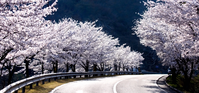 합천호반의 봄은 벚꽃으로 환하게 밝혀진다.