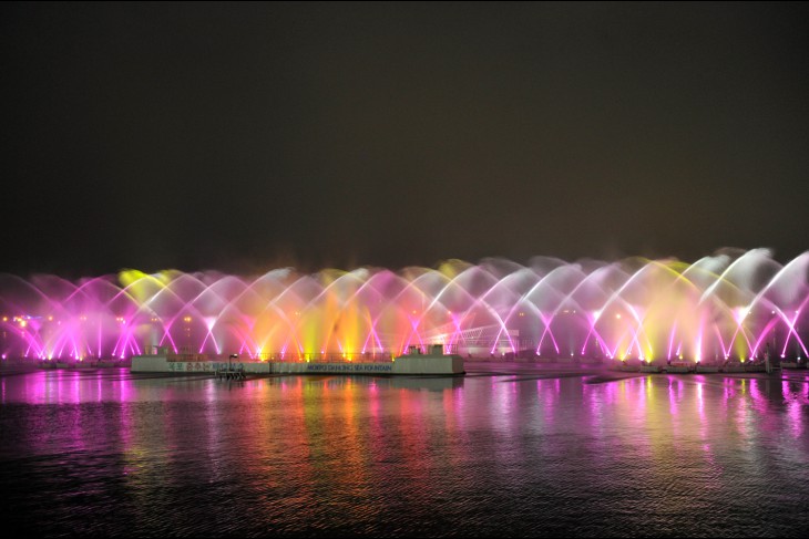 목포시내 평화공원의 음악분수는 음악과 조명으로 보는 이를 사로잡는다.