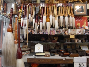 명신당 필방에는 사람의 머리만 한 붓부터 작은 세필까지, 선물용으로 좋은 붓들도 많다.여주인이 직접 깎는 정교한 전각을 조용히 보고 있으면 하루하루 이 자리를 지켜 어느새 20년이 넘은 이 가게의 삶을 되짚어 보는 듯하다. 요즘은 예쁜 손글씨, 캘리그라피(Calligraphy) 덕분에 젊은이들도 많이 찾는 데다, 수입은 많지 않아도 오랜 시간 찾아주는 이들을 위해 명맥을 이어갈 것이라는 말을 들으니 인사동은 이렇게 지켜지겠구나 하는 믿음이 문득 든다.