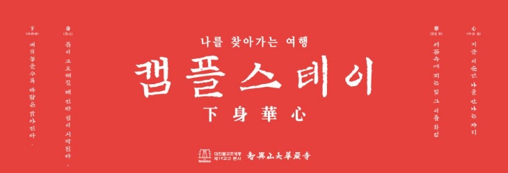 대한불교조계종 19교구 지리산대화엄사 교구장 우석스님은 천년의 역사 문화공간 지리산 대화엄사 화엄원 특설 마당에서 문화공간 확장 프로그램 아웃도어 템플테이(이하 캠플스테이) “하신화심 (下身華心)”를 진행 한다고 밝혔다. 캠플스테이는 “야외에서 텐트를 치고 숙식을 하는 “캠핑”과 기존의 “템플스테이”을 결합 한 프로그램이다.